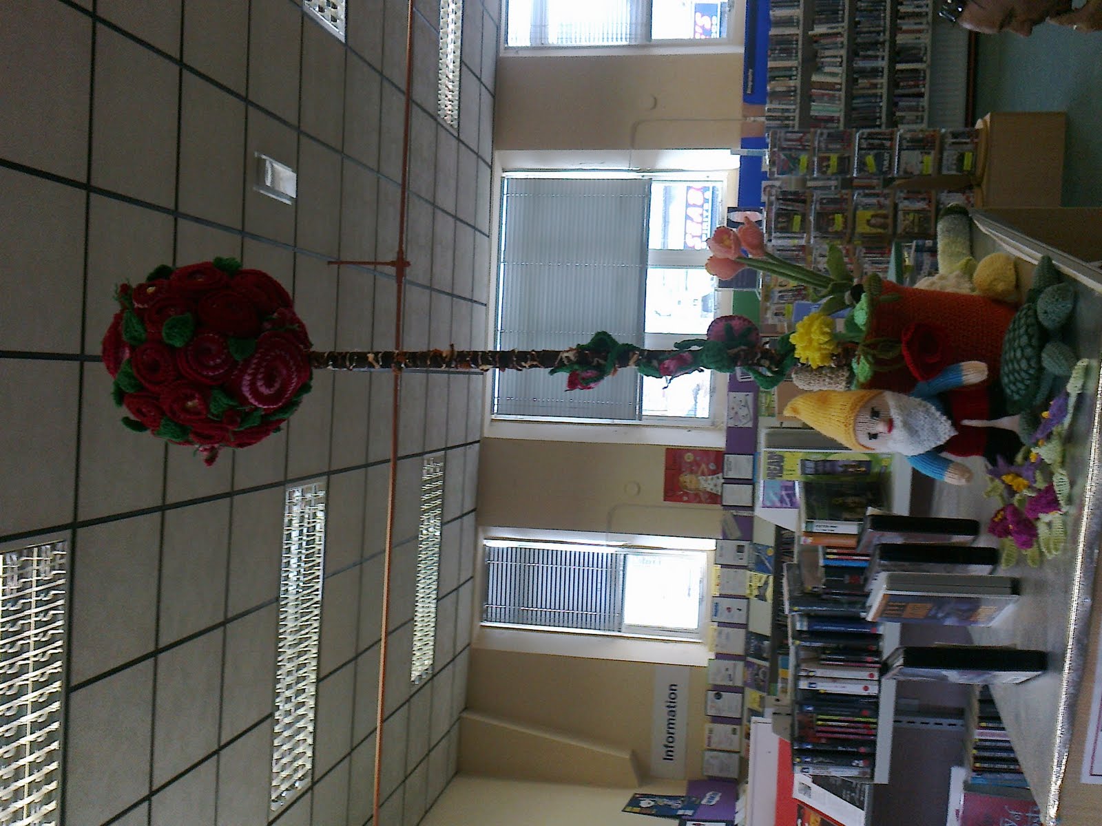 People still joining the project and we are giving knitting patterns out at the library for people to make work to add to it.